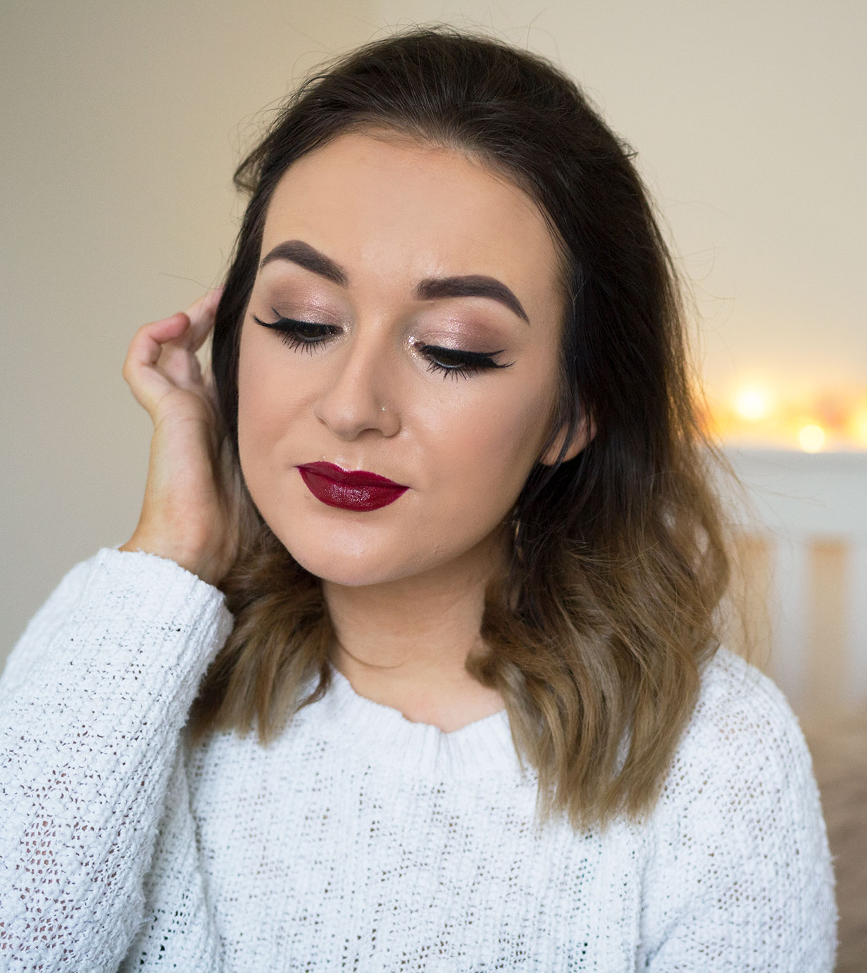 The colour itself is absolutely gorgeous, itβs a deep red with a pink undertone and itβs so pigmented. Like most bold lipstick shades itβs quite high maintenance and itβs better applied with a lip pencil underneath. Having said that, the formula is super creamy and hydrating, not drying at all. This does mean that it isnβt as long lasting as a matte or liquid lipstick, but I personally love the satin finish. It lasts a lot longer if you use a lip pencil and blot it after application, but the longevity is pretty impressive for a satin lipstick. I find that because itβs such a pigmented shade, it leaves a tint on the lips even when itβs wearing off which helps it to wear off evenly. Iβm absolutely obsessed with the new addition to my lipstick collection and I highly recommend it if youβre after a deep berry tone this winter that is creamy & non-drying.