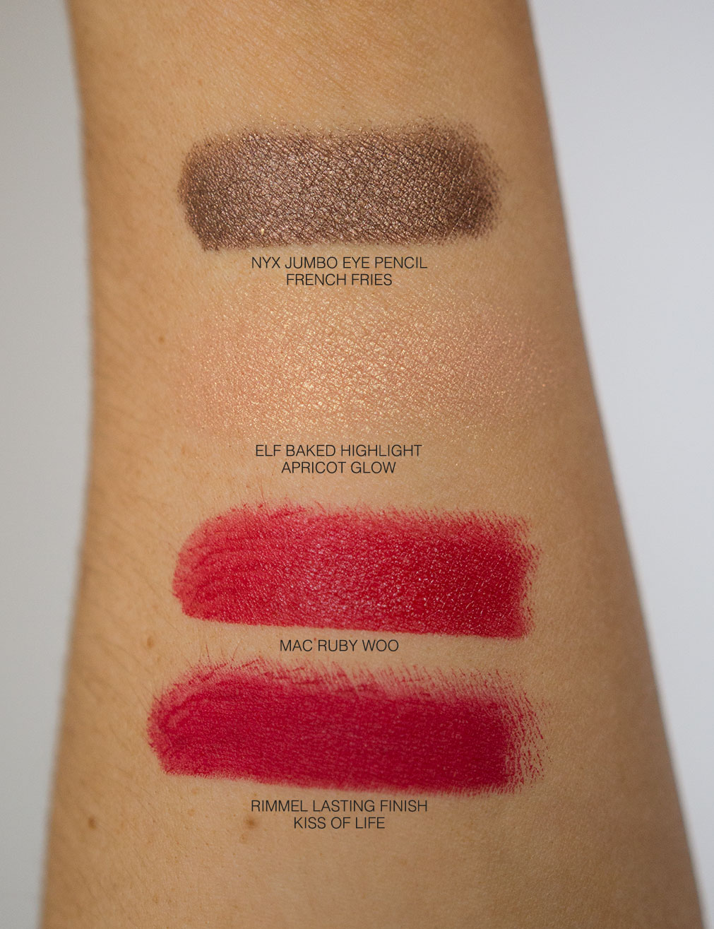 I picked up the Rimmel Kate Lasting Finish lipstick in the shade Kiss of Life after reading all of the promises that it was a dupe for MAC Ruby Woo. I donβt wear ruby woo that often even though I love it, just because of how drying it is. I was quite tempted to try this supposed dupe of the shade though, just because for around a fiver you canβt really go wrong can you? Whilst the Rimmel offering bleeds slightly more than ruby woo (itβs inevitable with such a bright shade) itβs an amazing alternative to have. The colour is almost identical when worn on the lips, and in my opinion itβs actually slightly better becauseΒ itβs not as matte as ruby woo is. This means itβs not as long lasting but it applies much easier to my lips and feels far more comfortable to wear. I would definitely reach for the Rimmel option over the MAC if I fancied a bright red lip one morning, although if I was going to an event where Iβd be eating and drinking, then Iβd probably opt for MAC just because of that longer lasting power. I definitely think itβs worth having both in your collection if you love a staple red lipstick because you get the best of both worlds, theyβre almost identical in colour but you have one longer lasting, more drying option and one thatβs more hydrating and easier to apply, but maybe needs a bit of a touch up after food and drink. You really canβt go wrong for the price.