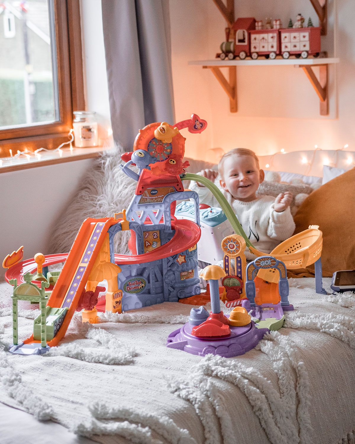 Heβs also loving the VTech Toot-Toot Amusement Park, if you have or know a little one who loves cars then they will be as obsessed with this as Reuben is. It did take a bit of building, screwing things together etc β but it was all so, so worth it. Itβs got so many different things to it, itβs fab for his motor skills and keeps him entertained for ages. It comes with a little car but also works with other toy cars as itβs essentially just a plastic track. Itβs quite pricey but well worth it in my opinion! The last toy that I really recommend from Littlewoods is the LeapFrog Number Loving Oven which Ru plays with so much. This one is the most affordable out of the three and just as good! Itβs got loads of music and sounds and little plastic cakes, bread and pizza for little ones to have lots of fun with and learn about counting and sharing. He sits there pretending to make his little pizza in the oven and then shares it out giving me my dinner β super cute!