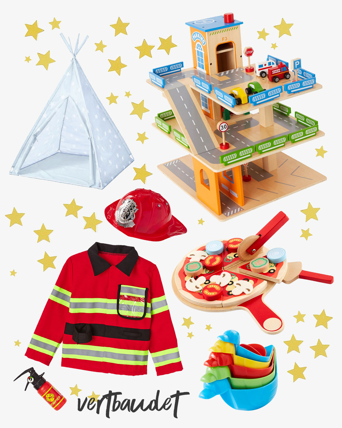 Another first for Reuben is a dress up costume, I picked the Firefighter Costume which I think is so cute. I have no idea what his reaction to this will be, but itβs a lovely little dress up set for kids and they come in loads of different sizes! Thereβs loads of other costumes too from dinosaurs and doctors to builders, lions and frozen characters! The next thing I selected was the Wooden Pizza Set, something I thought would go perfectly with another Christmas present Iβve bought him. He loves his toy oven and plastic food so much that I thought it would be nice to get him some more bits to role play with. If you love wooden food bits then Iβd really recommend having a browse of the Vertbaudet website as they have loaaaaads of different sets, there was a gorgeous wooden fruit box that I was really tempted to pick too. The last thing I picked was these Duck Water Scoops for the bath, Reuben loves bath time that much that he literally spends about an hour playing in it every evening and bath toys are the worst for constantly going mouldy so we were well overdue some new ones. His favourite thing to do in the bath is fill the jug with water and empty it again so I thought these water scoops would be ideal and he loves them!