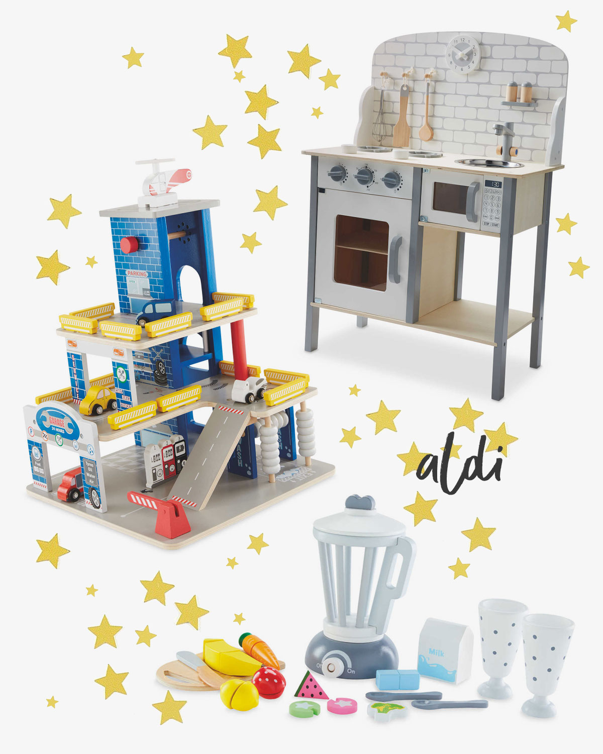 The last sort of βbigβ presents that Iβve got Ru this year are these bits from Aldi. Aldi have an amazing Christmas toy range this year β Iβve never actually looked in Aldi for toys before, but I thought there was so many amazing things! Everything is so affordable. The first thing that I got my mitts on was the Grey Wooden Kitchen, which I think is gorgeous for only Β£30! Iβve been after a toy kitchen for Reuben for ages but all the ones I liked were around the Β£100-Β£200 mark and I couldnβt justify it. Iβve heard mixed reviews on this one so far but havenβt actually built ours yet as Iβm setting it up on Christmas Eve like with the teepee. I canβt vouch for the quality but my dad is a woodworker so any issues we have can easily be sorted hopefully. The next little Aldi pick I got was the Wooden Smoothie Set which obviously ties in with the whole kitchen theme as I wanted him to have some little food sets to play with too. I think this one is super cute and comes with lots of little bits and bobs. The last toy I picked up was the Wooden Garage which is very similar to the Car Park from Vertbaudet, but Iβm really happy to have both as we can set them up in different rooms in the house as he has toy boxes in about three different rooms!