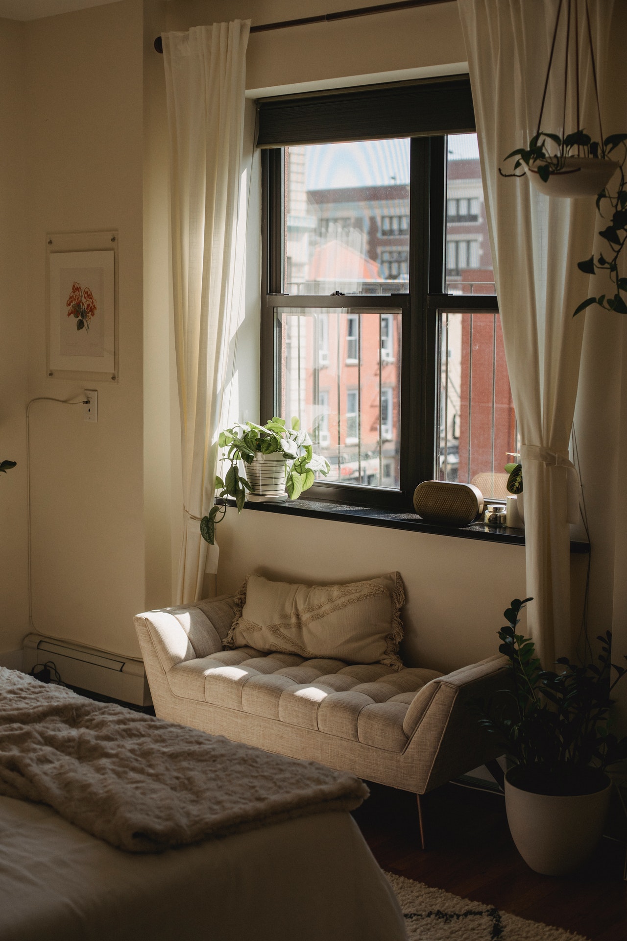 For instance, adding long curtains in neutral colours can open up the room and make the ceiling look higher than it is. And to give you a specific example of an ideal lightweight fabric for small interiors, linen is quite a popular choice among interior designers.Β