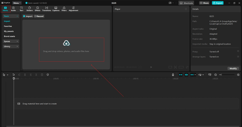 Start by uploading your travel clips to CapCut. You can import videos from your phone, camera, or cloud storage. CapCut supports various file formats, so you donβt have to worry about compatibility.